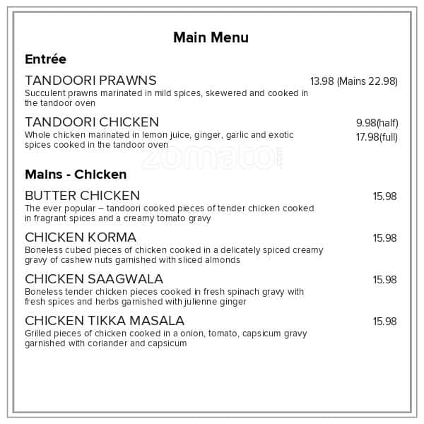 Classic Indian Restaurant Menu Takeout in Canberra Delivery Menu & Prices Uber Eats