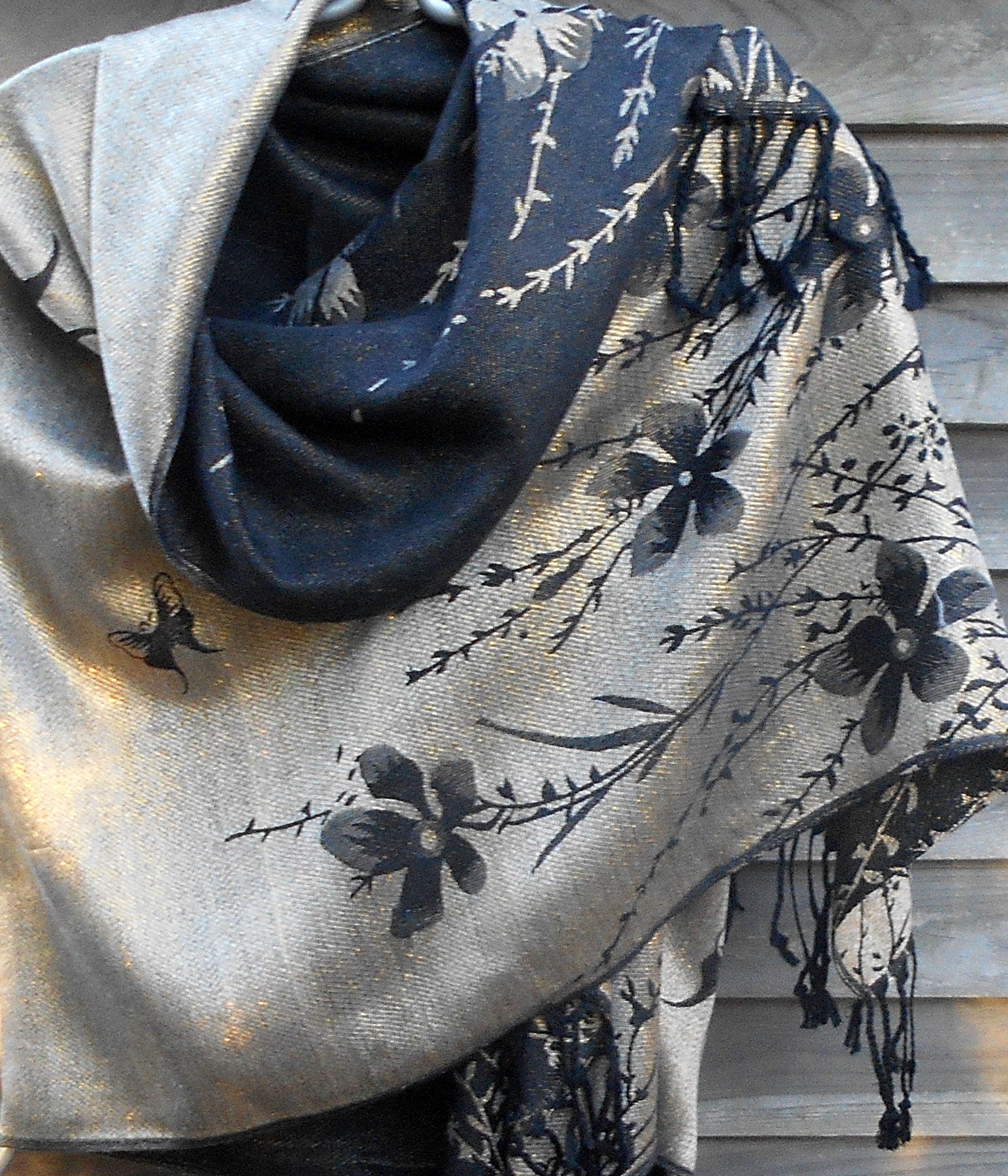 Festival Pashmina, Glitzy Shawl,Black and Gold Shawl,Floral Shawl,Rave Shawl,Mother of the Bride