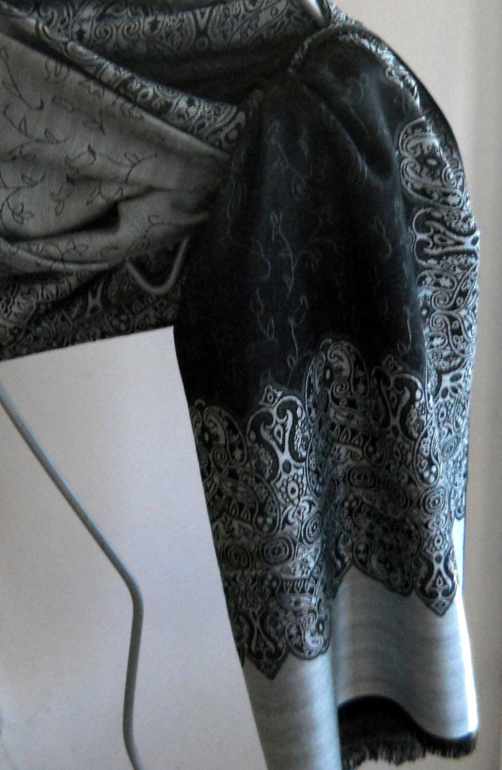 Women's Silver and Black Pashmina Shawl Wrap Fashion, Pashmina, Scarf styles