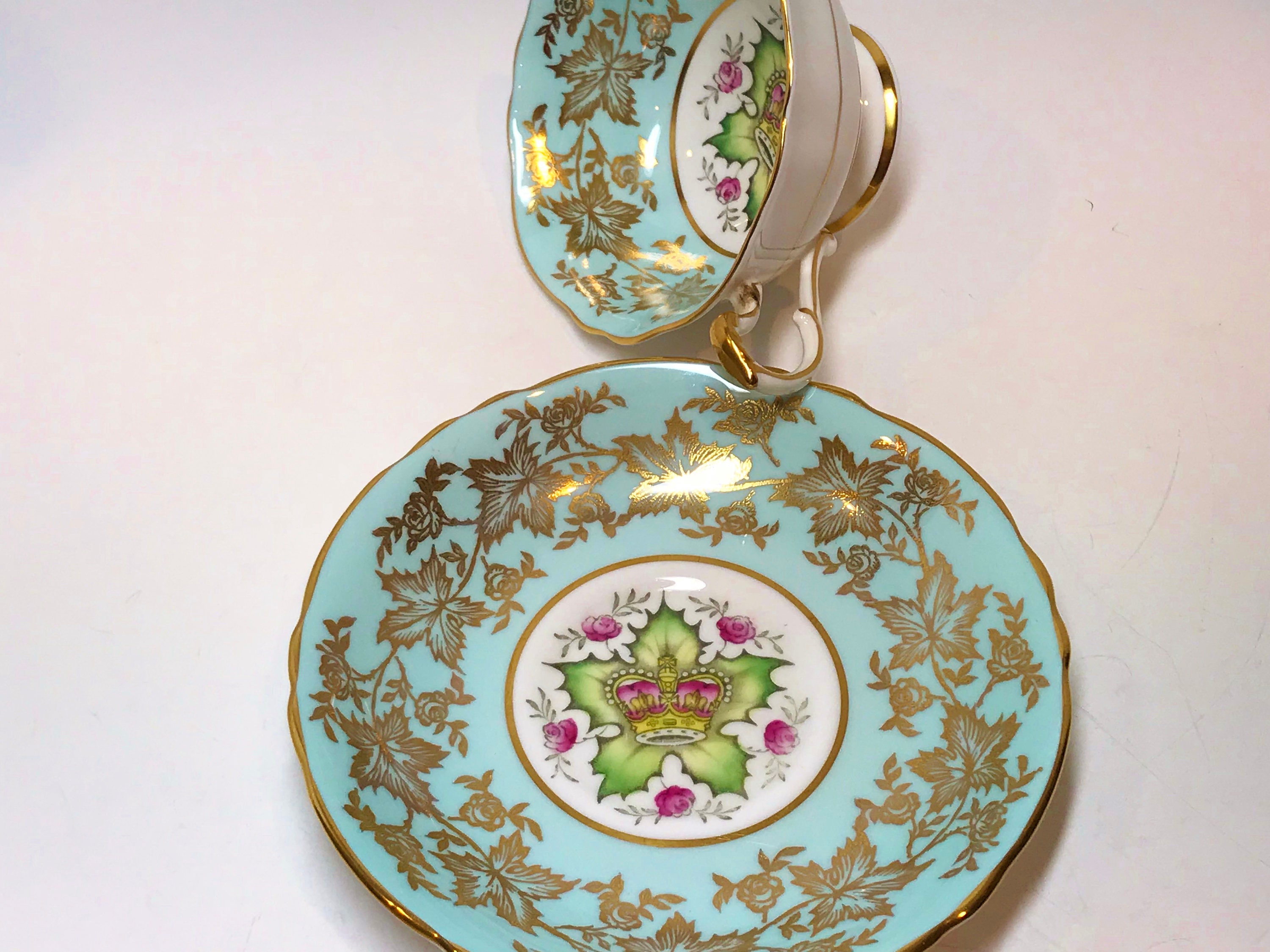 Aqua Paragon Tea Cup and Saucer, Coronation Cup, Aqua Cups, Queen Elizabeth Cup, English Royalty