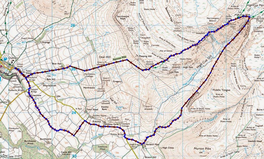 High Cup Nick Fell Race. Run Segment Dufton, Cumbria, United Kingdom. Distance 14.98km. Elevation Gain 566m. Avg Grade 0.0%. Lowest Elev 181m. Highest Elev 590m. Elev Difference 409m. 1,045 Attempts By 810 People.