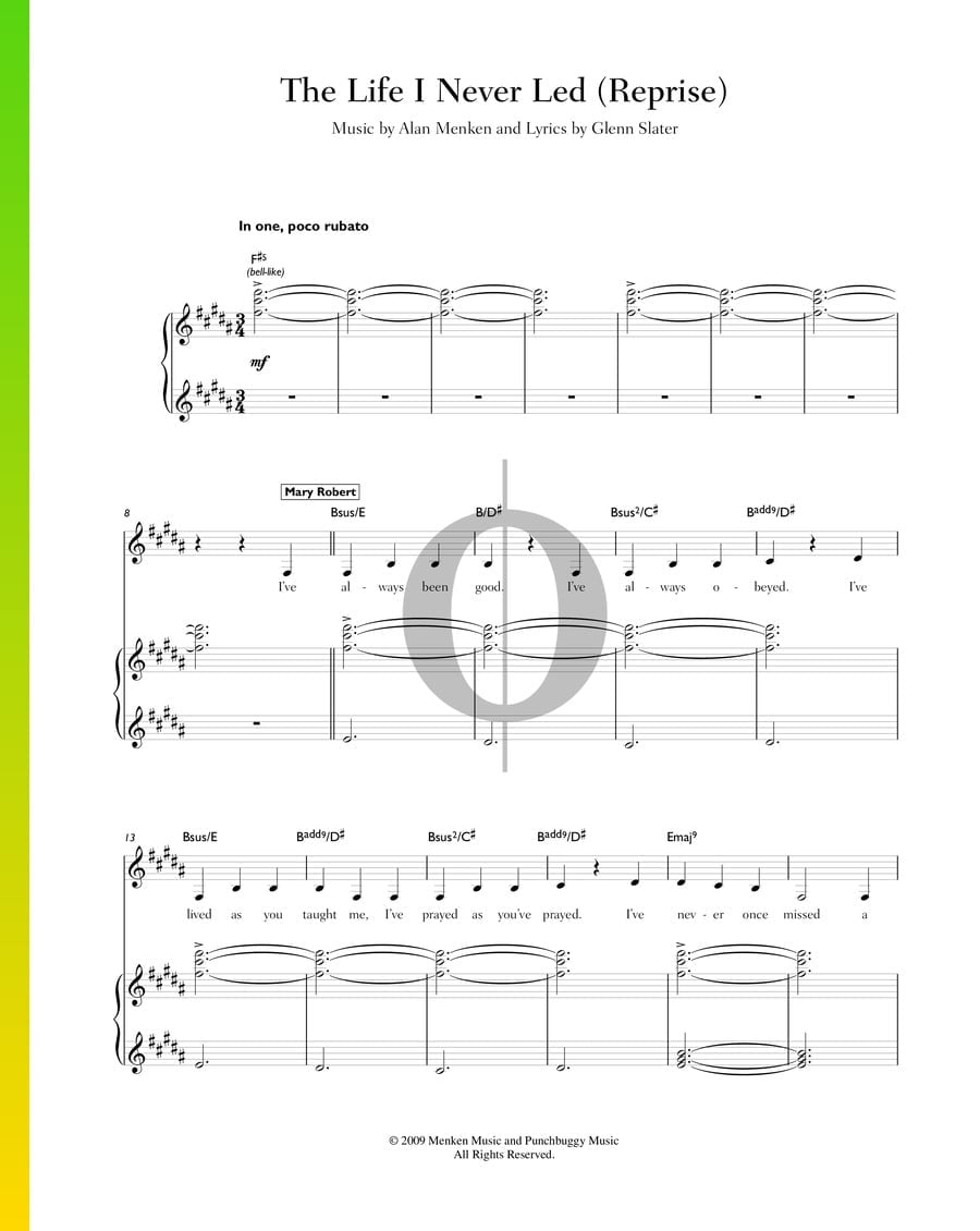 The Life I Never Led (Reprise) Sheet Music (Piano, Voice) OKTAV