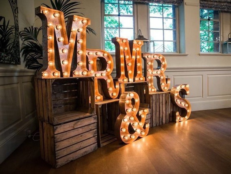 3Ft, 4 Ft Mr Mrs letter lights Light up letters, Large wooden letters wedding, Big Illuminate letters Marquee Letters sign Bulb Sign Letters (277) $ 85.00. FREE shipping Add to Favorites 3ft 4 ft Light up marquee letters large giant wedding initials lights bulbs wooden wedding numbers backdrop photo background event letter.