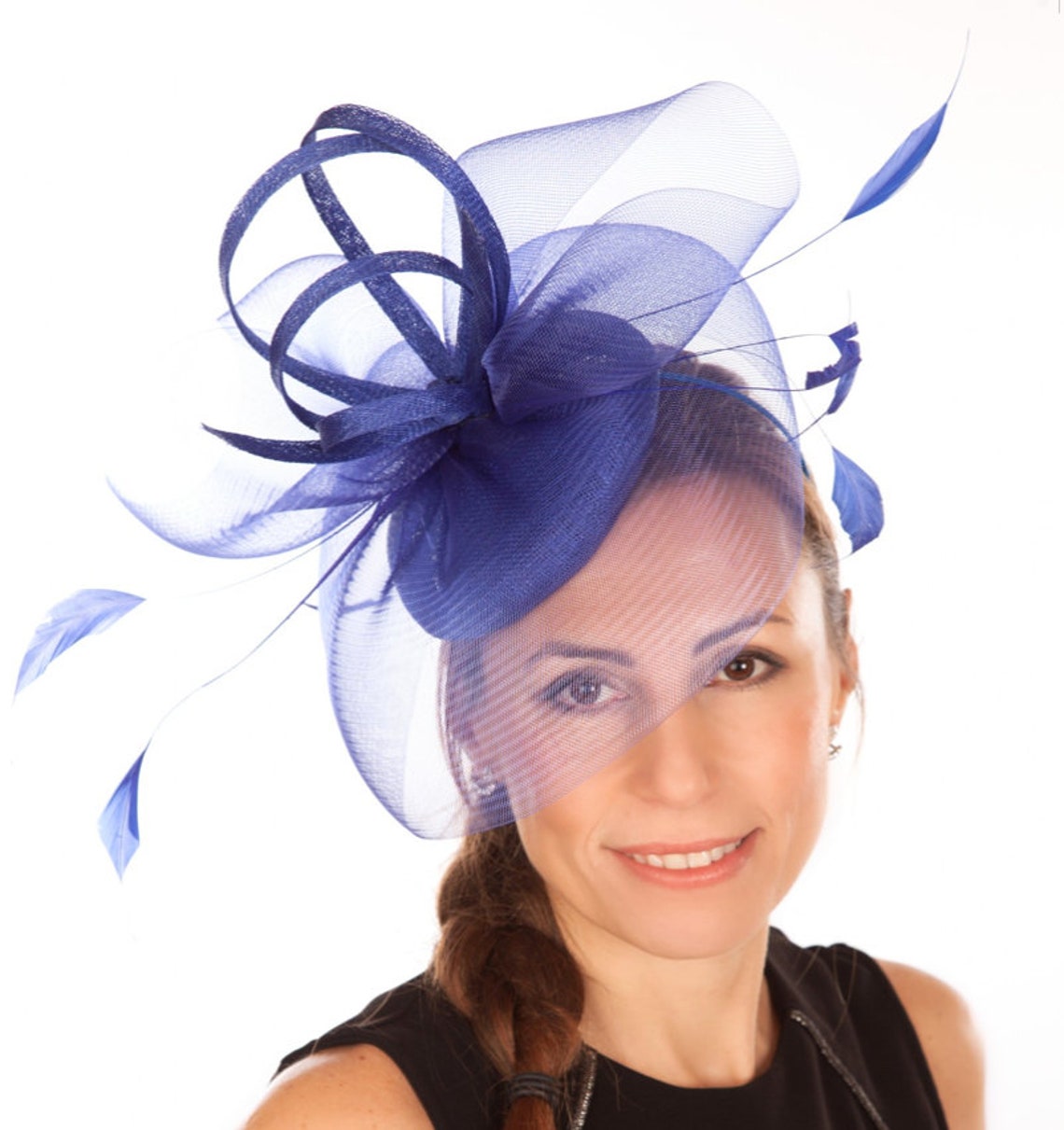 Navy Blue Hat Fascinator. Flower Feather Fascinator, Head Piece, Mother Of The Bride