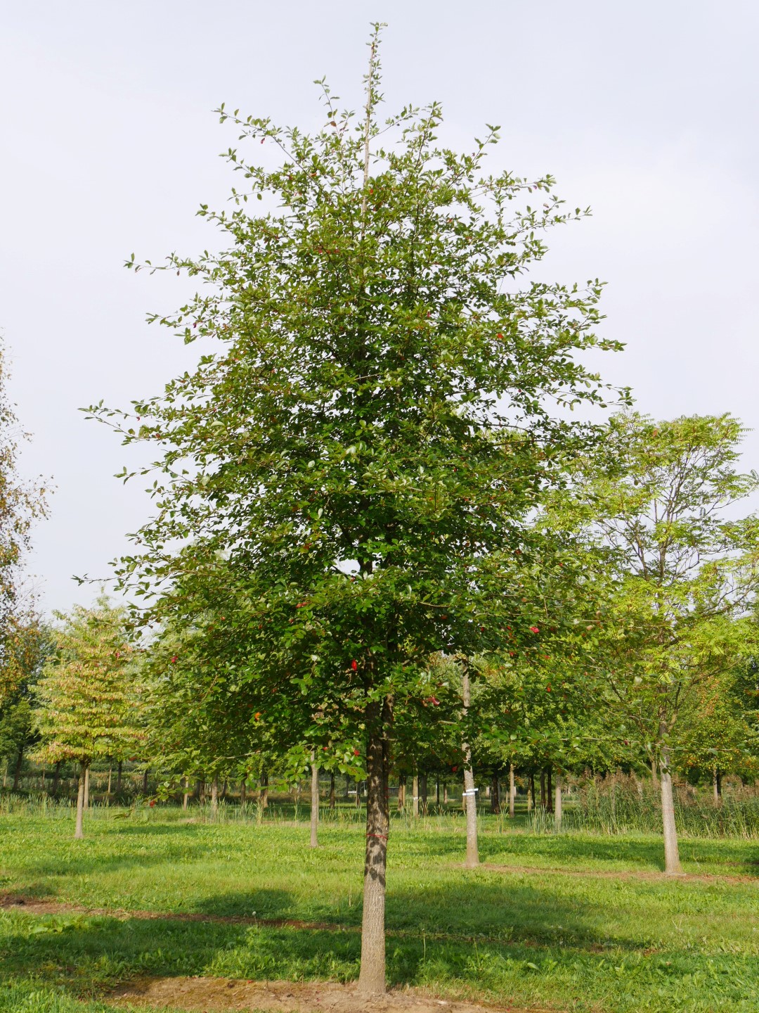 One of the most beautiful of trees, with habit comparable to Quercus palustris, but usually more irregular, and with a greater number of more slender main limbs. Silvery-gray, picturesque branching; strong horizontal accent. Difficult to transplant due to taproot; use container-grown plants when possible, or at least plants dug with a soil ball.