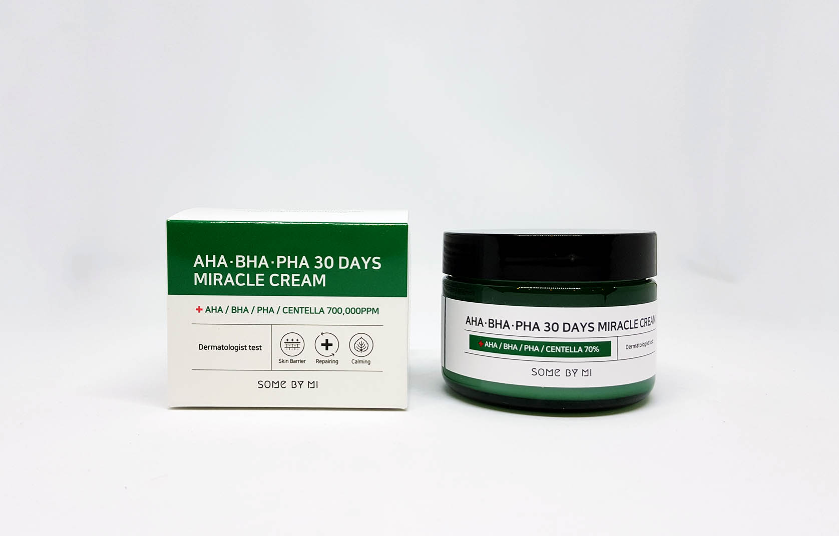 Product description. SOME BY MI AHA-BHA-PHA 30 DAYS MIRACLE CREAM 60g is a functional cosmetic cream which provides Strengthen Skin Barrier, Pore and skin waste care, Scar Treatment, Skin Moisturizing & Soothing , Skin Whitening & Wrinkle improvement. High Concentrated pennywort extract (700,000 ppm) and high concentrated 4-Cicacare (Asiatic.