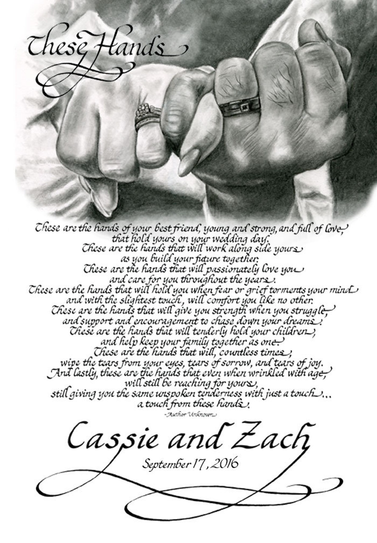 These Hands Personalized Calligraphy Poem Wedding and Anniversary Gift Etsy Wedding poems