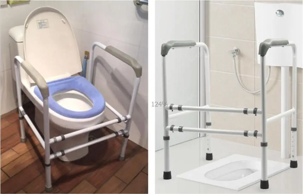 The legs are height adjustable and feature non-slip rubber tips for stability. Designed with simplicity in mind, the powder-coated steel frame attaches to a removable toilet seat and splashguard. Toilet Surround Support Frames. Similar to over toilet aids for the elderly, a surround frame supports users to transfer to and from the toilet.