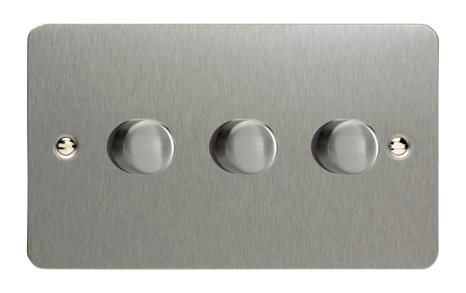 Varilight VPro Ultra Flat 3 Gang Brushed Steel LED Trailing Edge Dimmer Switch 1 or 2 Way