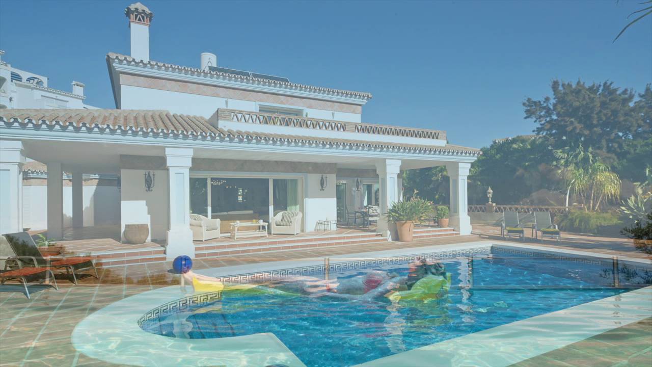 Description. ' Luis ' is a very spacious villa, with all 4 bedrooms being air conditioned, and with en suite bathrooms. The outside has lots of space with a large swimming pool ( 9m X 5m & depths of 1m - 2m) with end Roman steps. The water is cleaned biologically, making it very smooth on the skin (swimming pool can be heated, this is an.