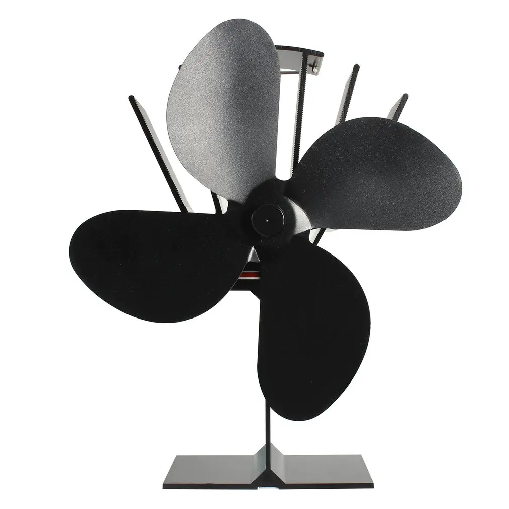 4 Blades Heat Powered Stove Fan Log Wood Burner Ecofan Quiet Black Home Fireplace Fan Efficient