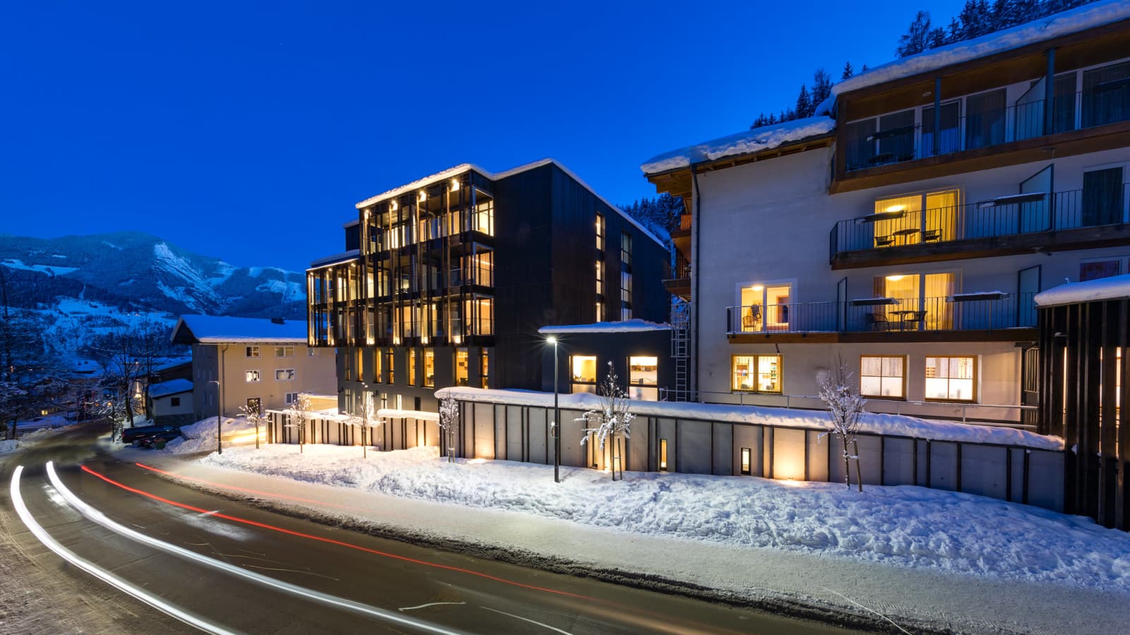 Fresh snow by the lake at the Grand Hotel, Zell am See, Austria. Ski holidays with flexiski