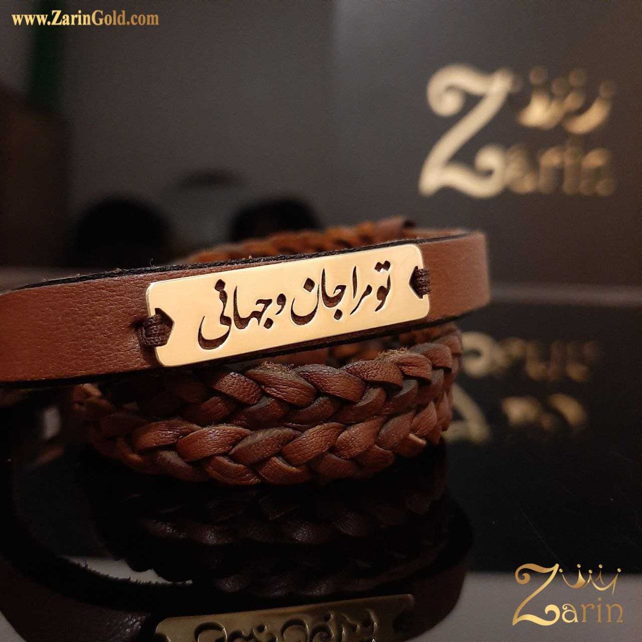 دستبند چرم و طلا زنانهمردانه تو مرا جان و جهانی طلای زرین گالری خرید طلا